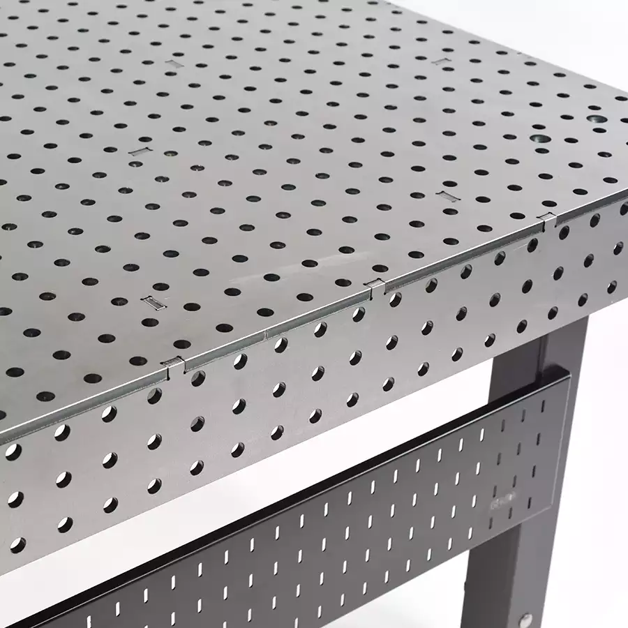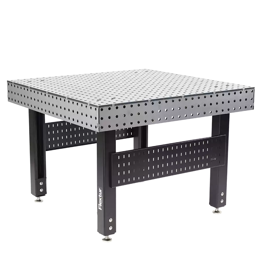 Flextur Welding Table 48″L x 48″W x 35″ to 41″H with adjustable stationary legs, 6,000lb capacity. Use with Flextur and Metal Pegboard Accessories.