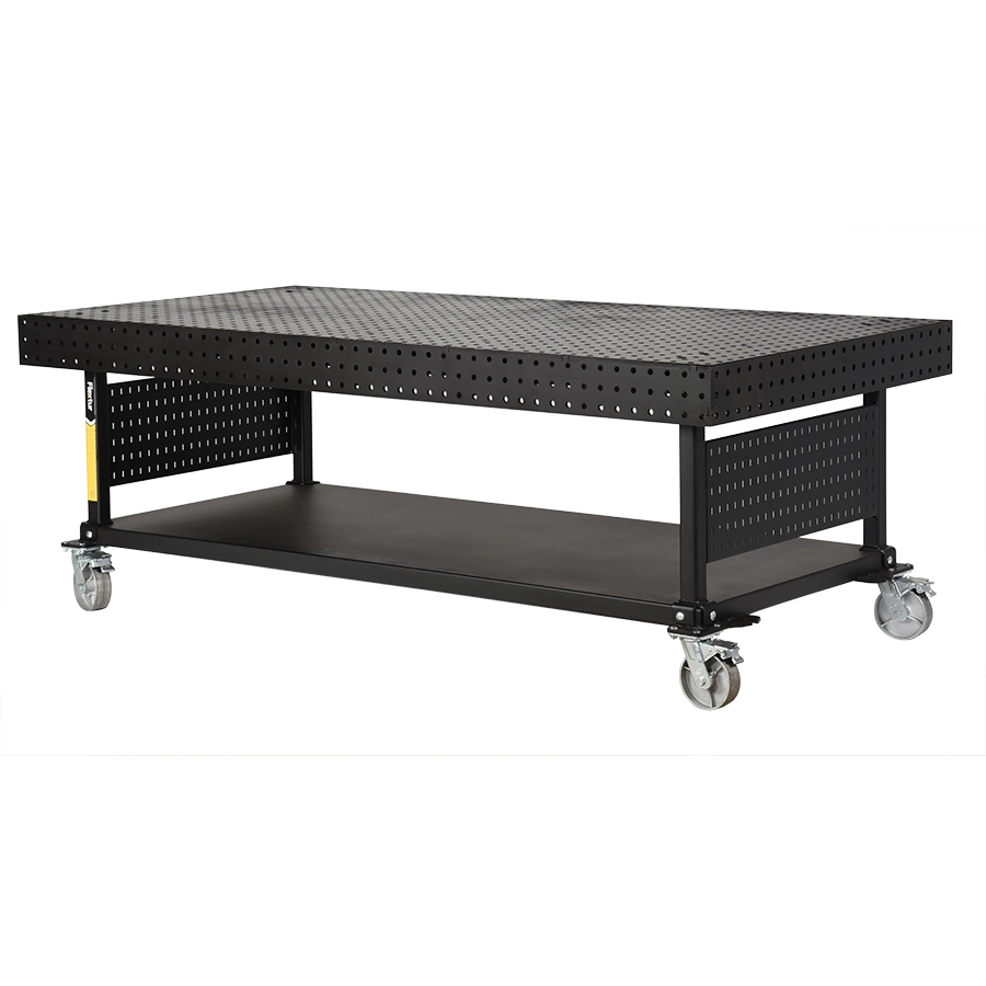 Flexturâ„¢ Nitride Welding Table 48″L x 96″W x 35″H with casters, 3,000lb capacity. Use with Flextur and Metal Pegboard Accessories.