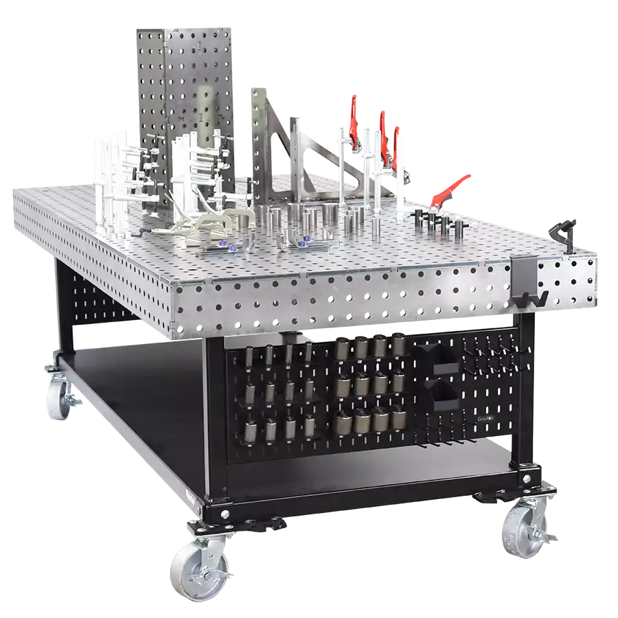 Flextur Welding Table 48″L x 96″W x 35″H with casters, 3,000lb capacity. Use with Flextur and Metal Pegboard Accessories.