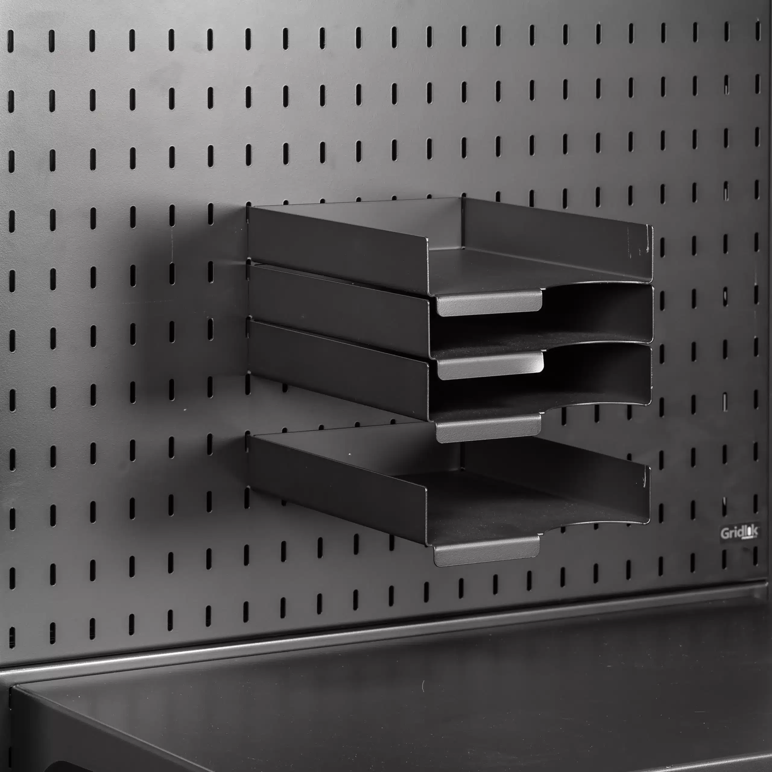 Its inbox-style horizontal design keeps documents protected, clean, and easy to retrieve. Multiple trays can be stacked vertically or aligned side-by-side to maximize space and streamline document management in LEAN environments. This tray integrates seamlessly with all Flextur 16-gauge metal pegboard and tool board systems, whether mounted to workstations, packing stations, or mobile boards. American Made in Dalton, Ohio U.S.A.