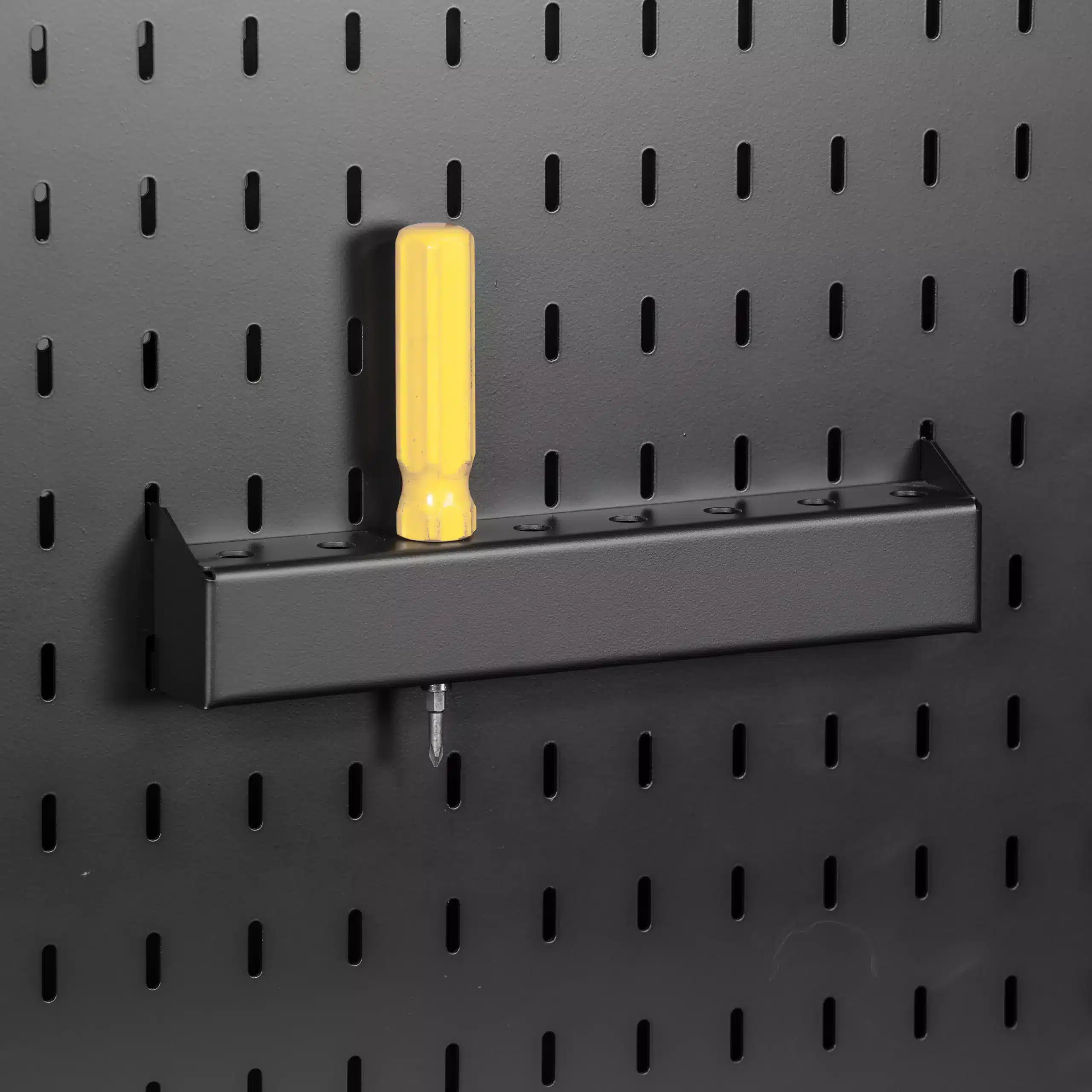 Flextur Screwdriver Rack securely holds up to eight screwdrivers and mounts to any Flextur metal pegboard or tool board. Easily reposition for optimal workflow.